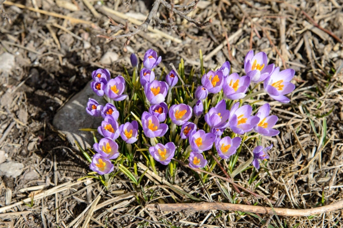 En weekend i april i Melby. Jorden er frossen, solen skinner og sneen ligger der stadigvæk i skyggen. Farverne er falmede men om nogle uger er der gang i det hele og orkideerne vil blomstre lige her.